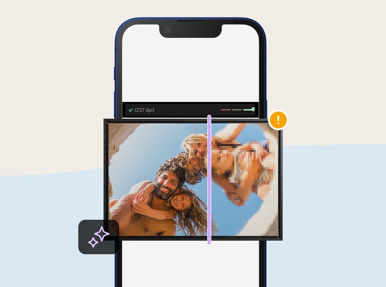Dale vida a tus fotos de baja resolución. Nuestra herramienta de IA mejora la calidad y reduce la pixelación, con lo que tu cuadro personalizado se verá perfecto al imprimirse.