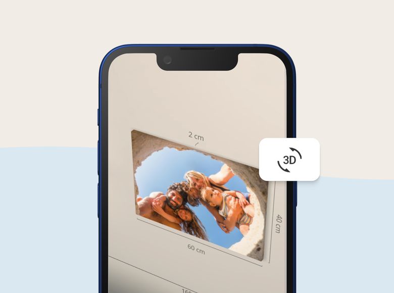 Comprueba cómo quedaría tu cuadro en 3D y hazte una idea del tamaño, grosor y acabado del marco.