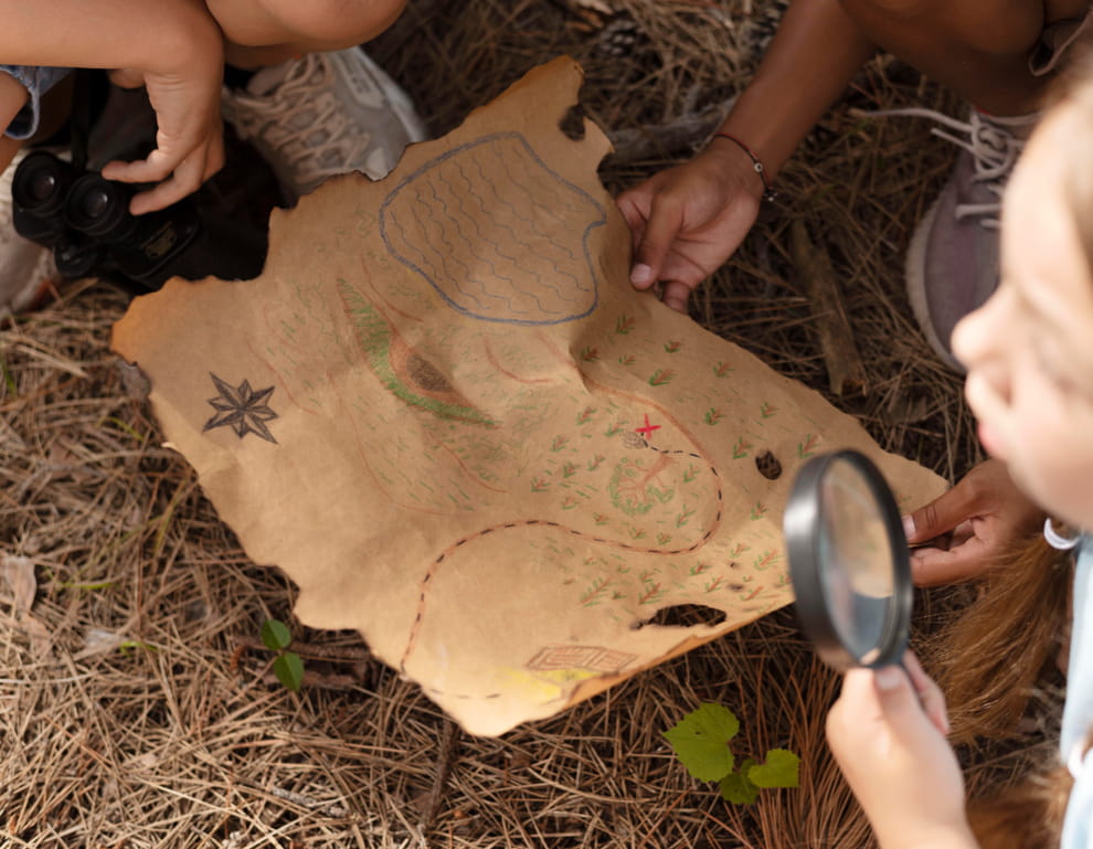 Lo más importante es pensar en un camino que tenga que seguir para llegar a ellas (puedes hacerlo en casa, en el jardín o en un parque). Si es para niños es posible que salir a la calle para la búsqueda del tesoro sea más emocionante.