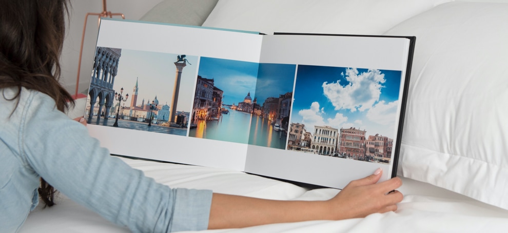 4. Álbum apaisado: Con una apertura de 180°, este álbum de fotos es perfecto para fotos apaisadas. Si tienes fotografías impresionantes de tus vacaciones, este es tu álbum.