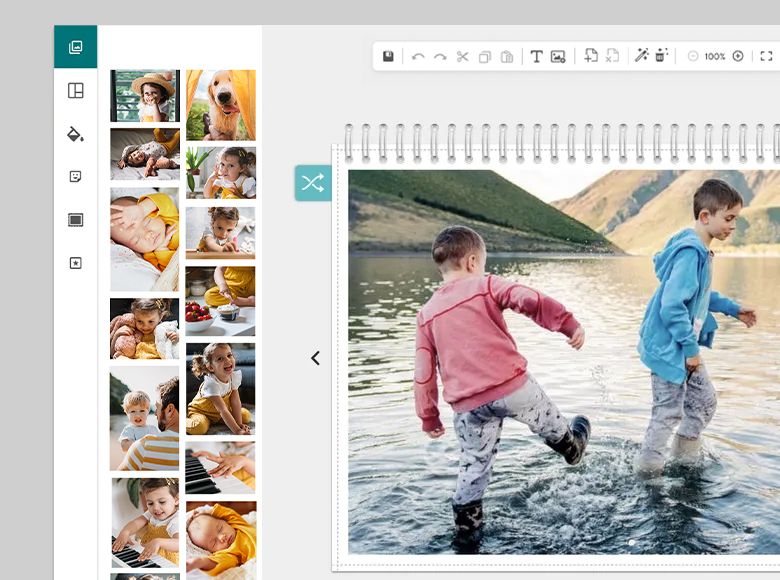 Deja que nuestra herramienta de diseño inteligente con IA haga el trabajo pesado. Te sugerirá la mejor manera de organizar tus fotos para que tu diseño quede espectacular.